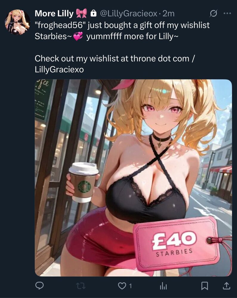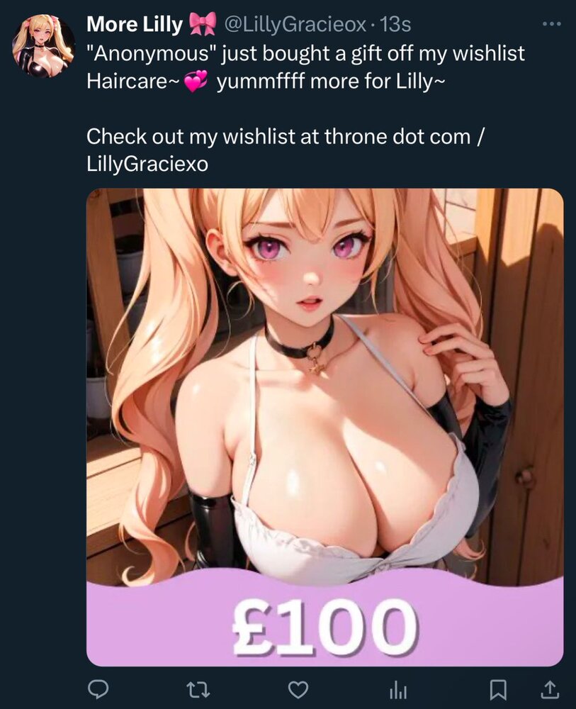 wages yummfffed~? it’s a £2k morning and a Twitch stream day ☺️ what have you brought me simp?~