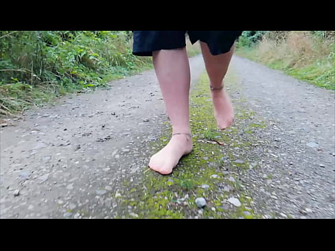Los pies de nailon dan un paseo por la naturaleza.